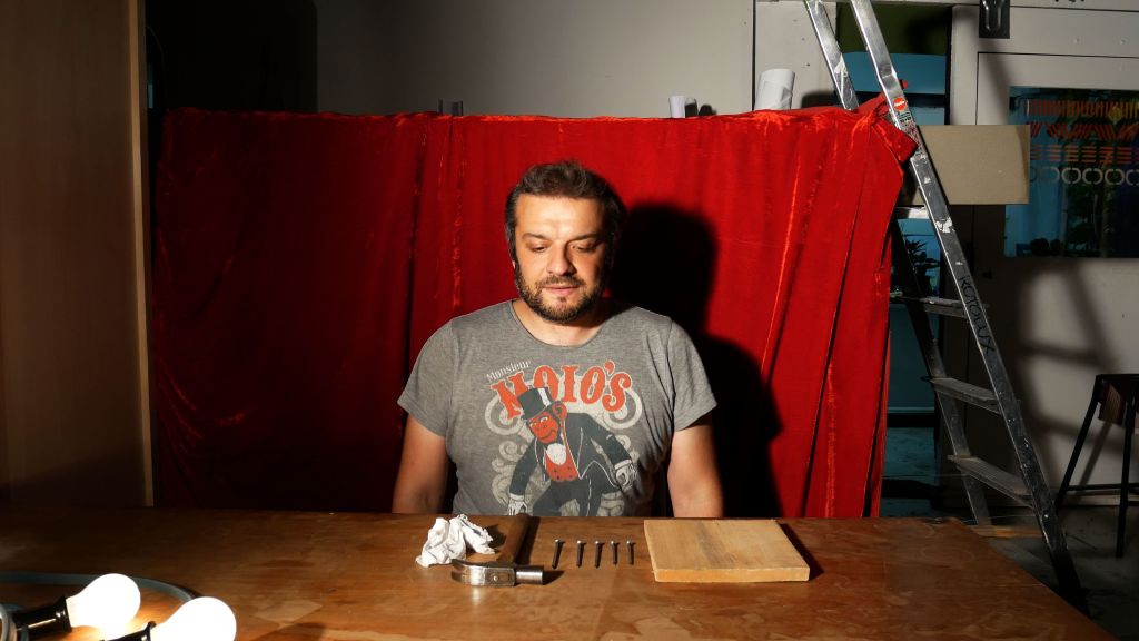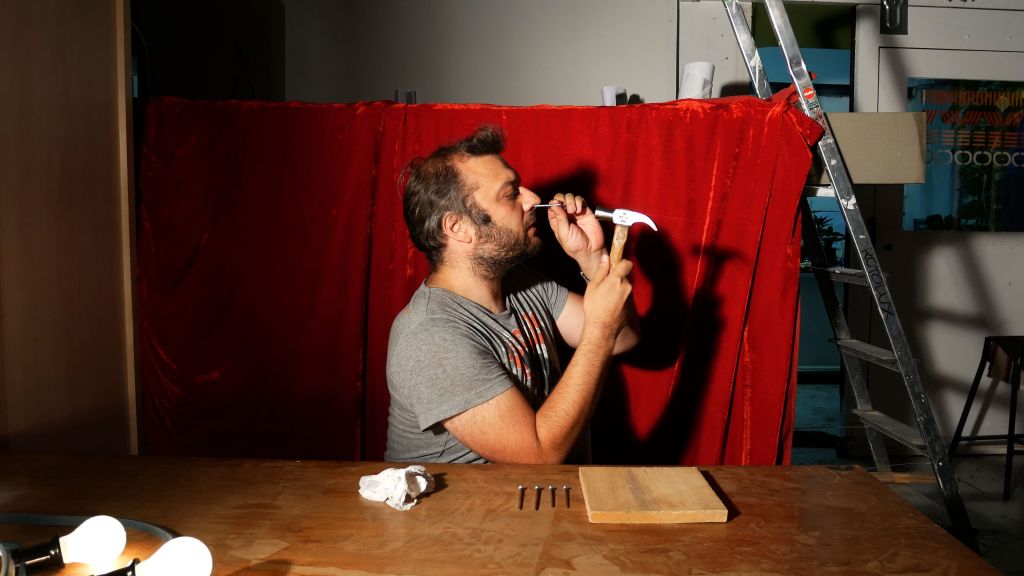 Le menuisier n’était qu’un fakir est le seul tour sans trucage qui consiste à mettre un clou dans le canal nasal. Cette vidéo a été réalisée au sein de mon atelier comme des shows improvisés en utilisant mes matériaux de prédilection (le bois brut…) ainsi que ces outils et quelques accessoires de magie pour l’exposition Smoke and Mirrors à la Progress Gallery. Série: Atelier-magie