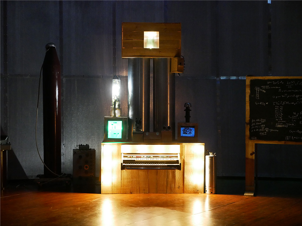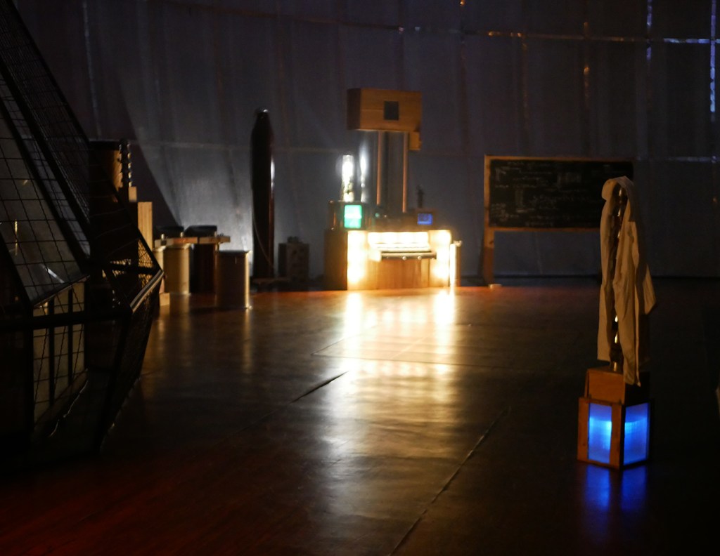 M.A.D.C.A.N (Microscope A Double Colonne Atomique Nucléaire) est une sculpture qui permet grâce à la musique de voir la matière noire.