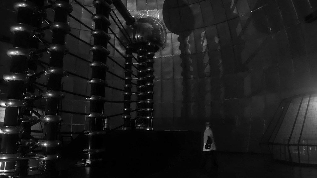 Un bruit étrange résonne dans la ville. L’ancien laboratoire en forme de sphère pourtant fermé depuis trente ans, semble être occupé. Tout à coup, une lueur vive éclaire le ciel sombre. La Terre semble s’être arrêter. Une sensation de légèreté et en même de gravité envahit l’air.